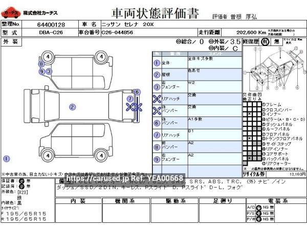 ![Used 2012 AT nissan serena DBA-C26 Image[9]](https://d1og64tg0ubvon.cloudfront.net/refno-cars/2026/0415/5426017/010.jpg?w=600&ts=1776284335)
