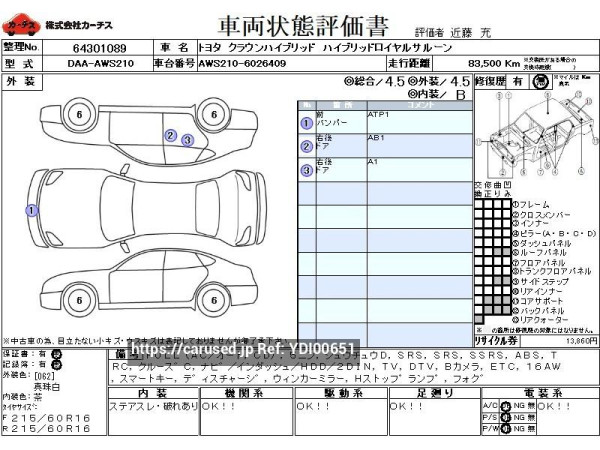 2013 Toyota Crown Hybrid DAA-AWS210 ハイブリッドロイヤルサルーン