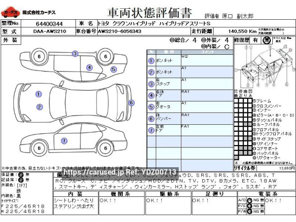 2014 Toyota Crown Hybrid DAA-AWS210 ハイブリッドアスリートS