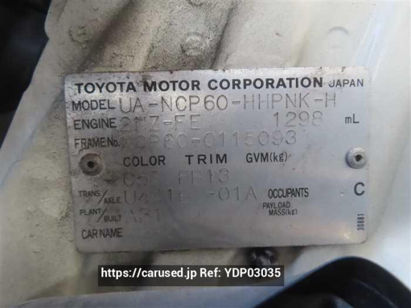 This engine is also installed in the first and second generation of Vitz, Will Vi, Platz, Toyota Yaris Verso and so on.