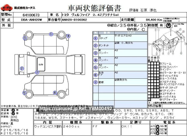 2010 Toyota Vellfire DBA-ANH20W 2.4ZプラチナSel