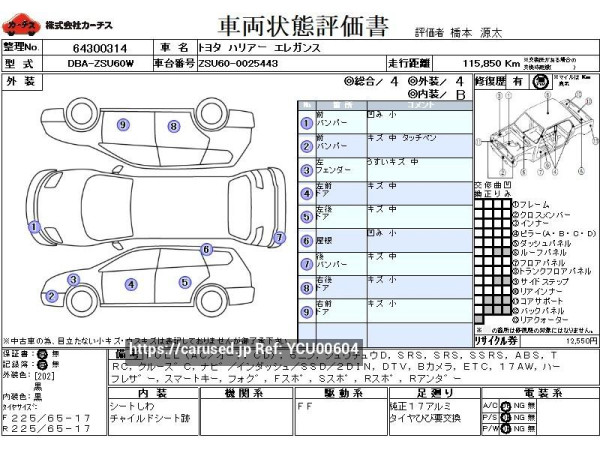 2014 Toyota Harrier DBA-ZSU60W エレガンス