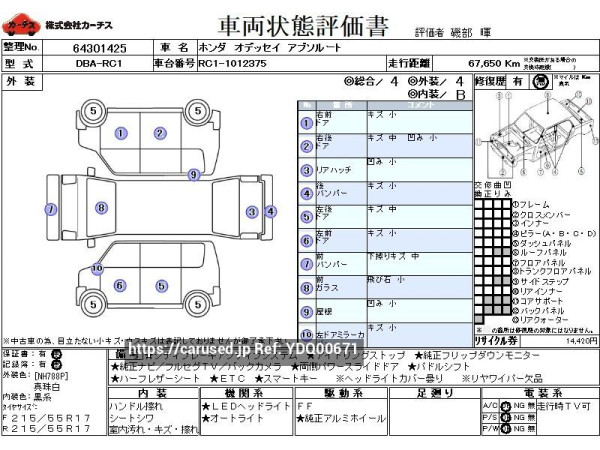 ![Used 2014 AT honda odyssey DBA-RC1 Image[8]](https://d1og64tg0ubvon.cloudfront.net/refno-cars/2026/0405/5399237/009.jpg?w=600&ts=1777061628)
