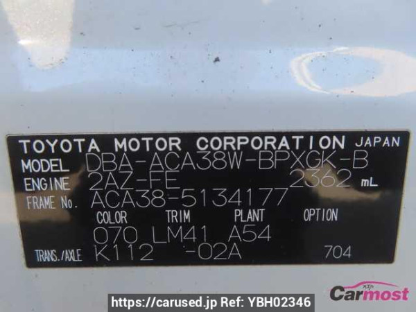 ACA38W is also the model of the first generation of Toyota Vanguard. The main difference between ACA33W and ACA38W is that ACA33W is 2.4-liter 4x4 and ACA38W is 2.4-liter FF.